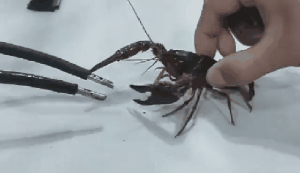这个视频更有意思了。这是我的一个博士生的创意,他想既然这个手术器械是从小龙虾这种生物衍生过来的,好,我们打一架。这个手术器械给小龙虾来了一个抱摔。