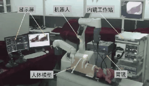 视频展示的就是我们的一次尝试,还是非常成功的,机器人可以自己凭借图像、凭借它的力感和运动能够从人的口腔一直走到十二指肠的部位。当然这是在模型里做的。