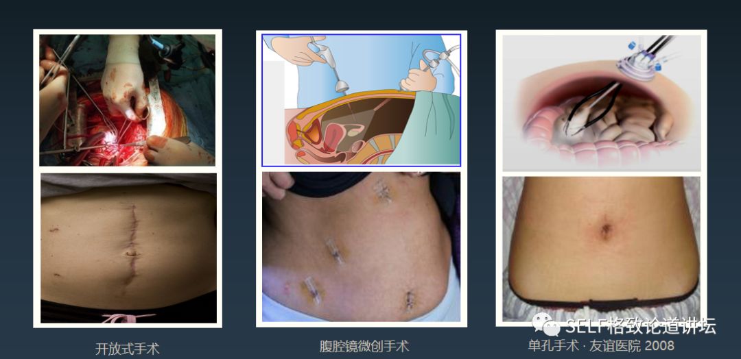 再到最新的技术,我们把所有的手术器械通过一个窗口放到人的腹腔里,手术做完以后发现没有疤痕。实际上是利用了人的肚脐这个天然的疤痕。