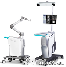 随着技术的进步,也为手术机器人带来了一些突破。像图中就是用一种染色的办法,通过荧光成像,把它的图采集回来,这样手术机器人就可以看到病变在哪里。