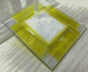 如果超疏水表面撒上白色粉末来模拟灰尘,滴水就很容易实现表面清洁。即使液滴高速撞击,液滴完全都碎裂了,细小的水珠也不会在表面驻留。
