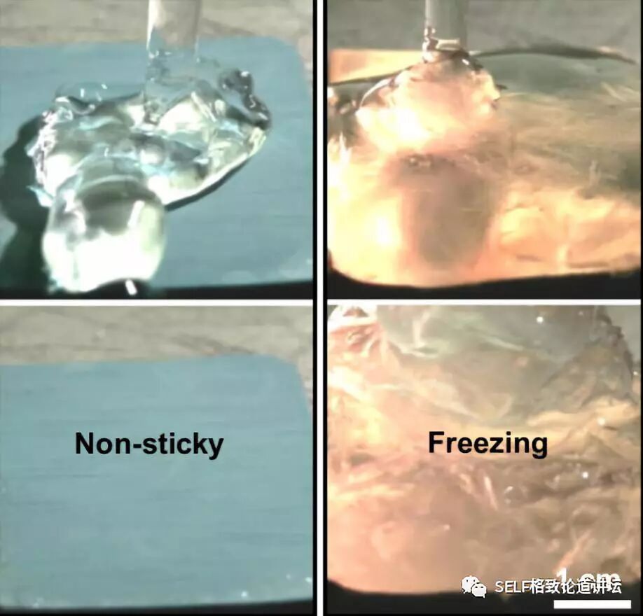 有意思的是,这种纳米仿生界面还具有防冻雨结冰的功能,这是因为这种界面不仅能够防水汽穿透,而且还具有超疏水低黏附功能。