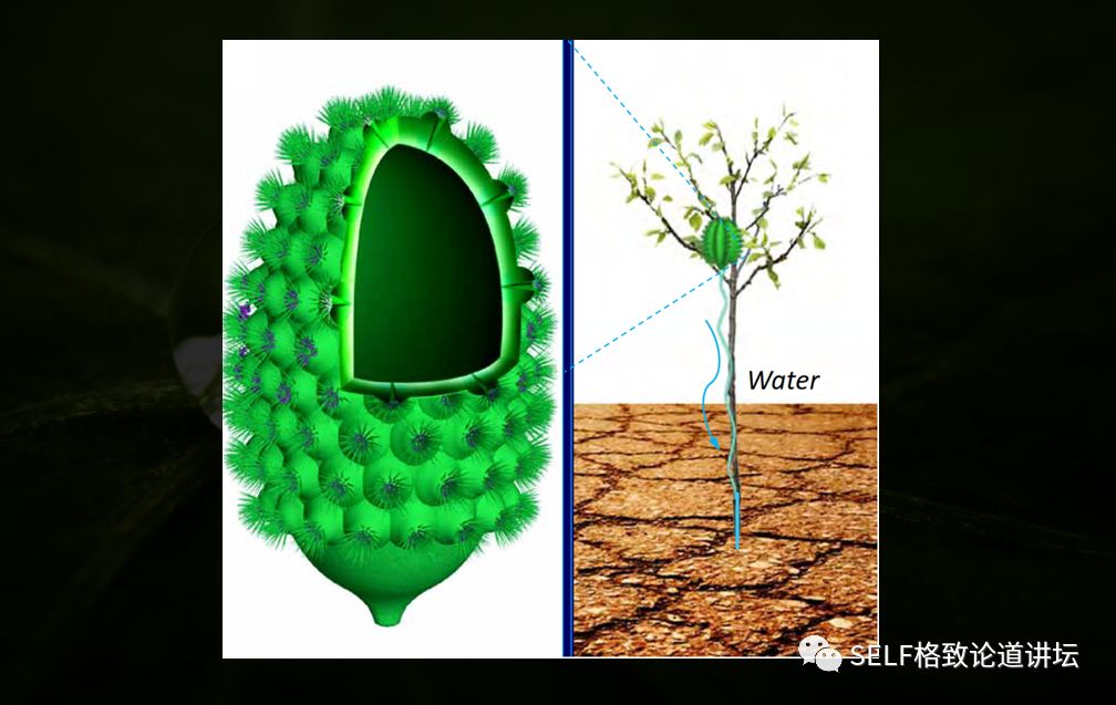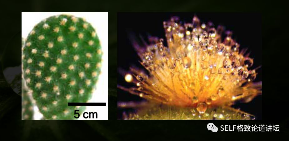 这是因为空气中的水分可以在仙人掌刺的表面凝结并定向输运至其根部。受此灵感启发,就可以研制新型仿仙人掌刺的集水装置用于植被灌溉。