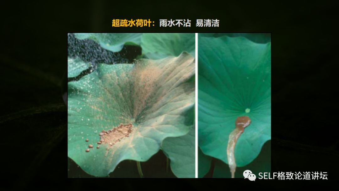 受荷叶灵感启发,我们就可以人工研制超疏水界面,水滴可以完全不沾。