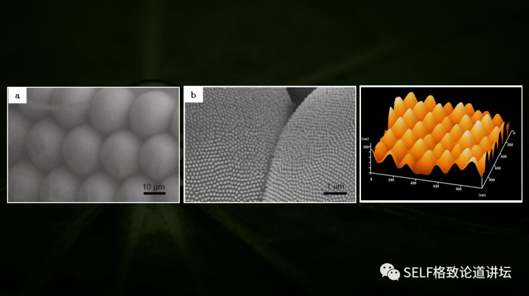 不同于荷叶表面松散的微米乳突纳米突起结构,蚊眼表面覆盖有一层更精细的、能够紧密排列的纳米锥,正是这种独特的密排列纳米锥阵列结构阻止了雾滴的黏附。