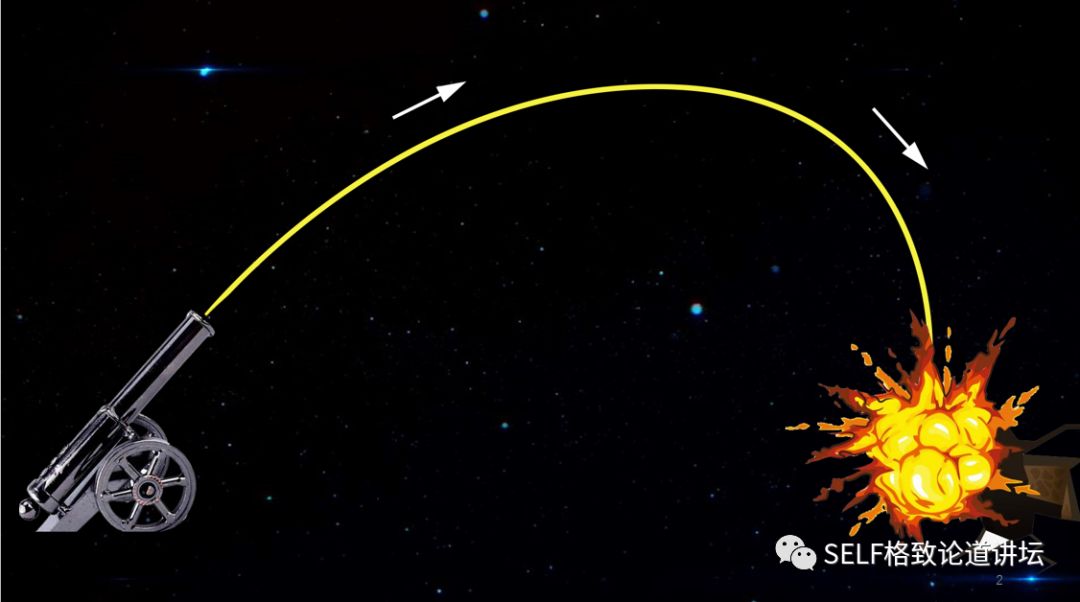 这其实是一种物理现象,就是宏观物体的运动规律,就像这张图片上所示的枪炮子弹的飞行轨迹一样,都是宏观物体的运动规律,都可以用牛顿力学来解释。