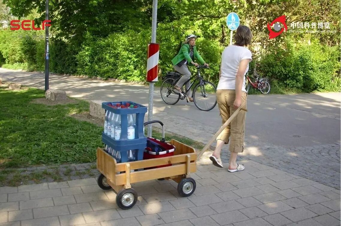 沃邦社区很有名,它是欧洲最低碳的社区,这里70%的居民是没有车的,他们出行大部分靠自行车,还有拉着自己的推推车到商场还水瓶,大家不愿意用车。