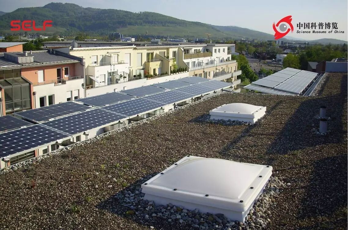 在屋顶上有大量太阳能的光板,或者集热器、透光的窗户,所以沃邦整个居住区主要使用可再生能源。