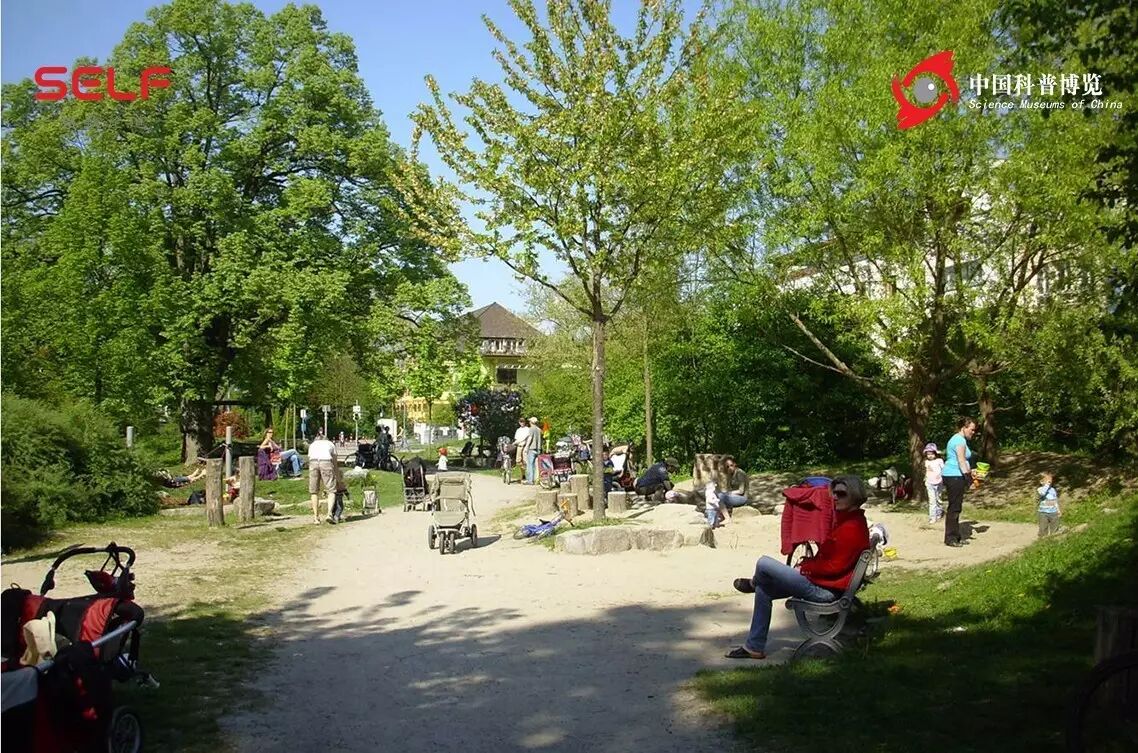 这是投放垃圾的地方。这个设计有两个目的,一个是低碳,另外一个就是促进人们的沟通。所以社区楼与楼之间一定有一块绿地场所,这些绿地场所让大人和小孩儿来这里玩耍、休闲,所以这个社区的居民关系非常融洽,有些家庭妇女成了社区的托儿所,这就是现在欧洲或者是德国最提倡的绿色社区。