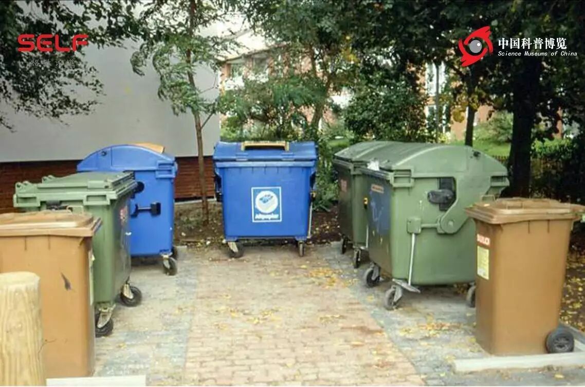 这是我在德国居住的社区周边,已经安放了不同的容器,绿色的放塑料,棕色的放树叶,不同的公司来清理,都拿去做了资源化处理。
