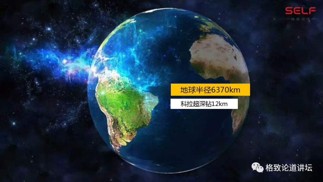 这张图的黄色线标则是地球半径的长度6370千米,而我们刚才说的科拉深钻只有12千米,也就是说连地球的皮毛都没有打透。这意味着我们上天容易而入地难。