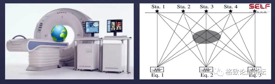 在医院中我们大家可能都做过CT检测,它对人脑或者对器官做一个全方位的扫描,这样通过切片,我们就可以很容易地分辨出哪个地方可能有异常,哪个地方有肿瘤。把人类大脑做CT的概念借鉴过来,我们也可以对地球做CT。