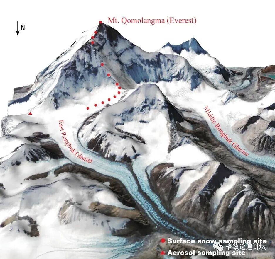 这是我们在珠穆朗玛峰东绒布冰川打冰芯的工作流程图,我们从海拔5400米的大本营,到海拔6500米的地点打冰芯,还有一些同事直接登顶了。