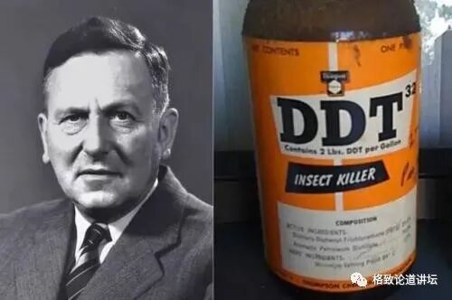 早在1940年,DDT就被合成出来了,它的发明者还获得了诺贝尔奖。最早合成DDT是为了杀死蚊子、苍蝇和其他害虫。DDT获奖后被广泛应用在农场中。
