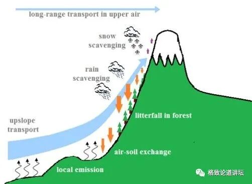 除了叶片对大气的吸附以及降雨、降雪过程外,森林的落叶过程也可以把叶片里吸附的物质传递到地表。
