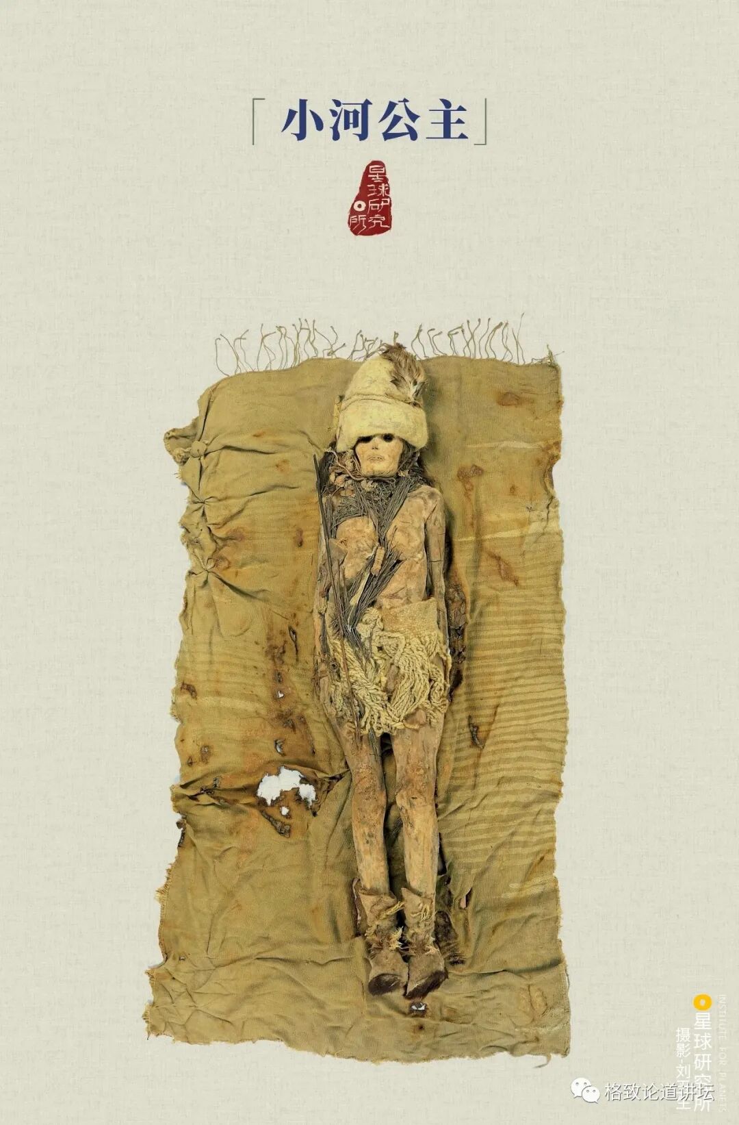 下面这张图是著名的小河公主,因为她出土在小河墓地而得名。可以看到小河公主的穿着:头戴毡帽,脚穿皮靴,中间还穿着短裙。这是一个非常时尚的打扮,这种衣着美学即便放在现在也不会过时。