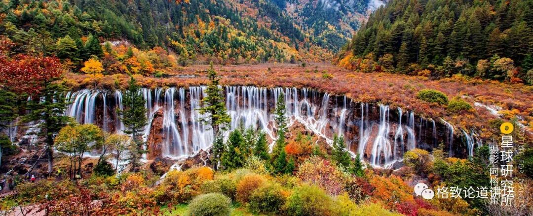 可以看到,九寨沟就是由这些冰川、地震、崩塌、泥石流、流水等这些作用共同合力创造的一个像艺术品一样的景观。