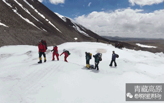 这张照片是我们在冰川上进行第二次青藏高原综合科学考察的科研工作者。