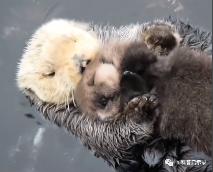所以海獭妈妈需要随时抱着海獭宝宝,给它的皮毛吹气,随时给它热量,以免它被冻死。所以就有了我们所看到的温馨画面。