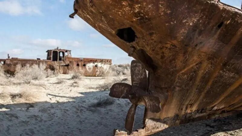 在乌兹别克斯坦的木伊那克,原本咸海里还有水的时候,这里是繁华的渔业基地,高峰时期当地有三万以上的人从事渔业工作。
