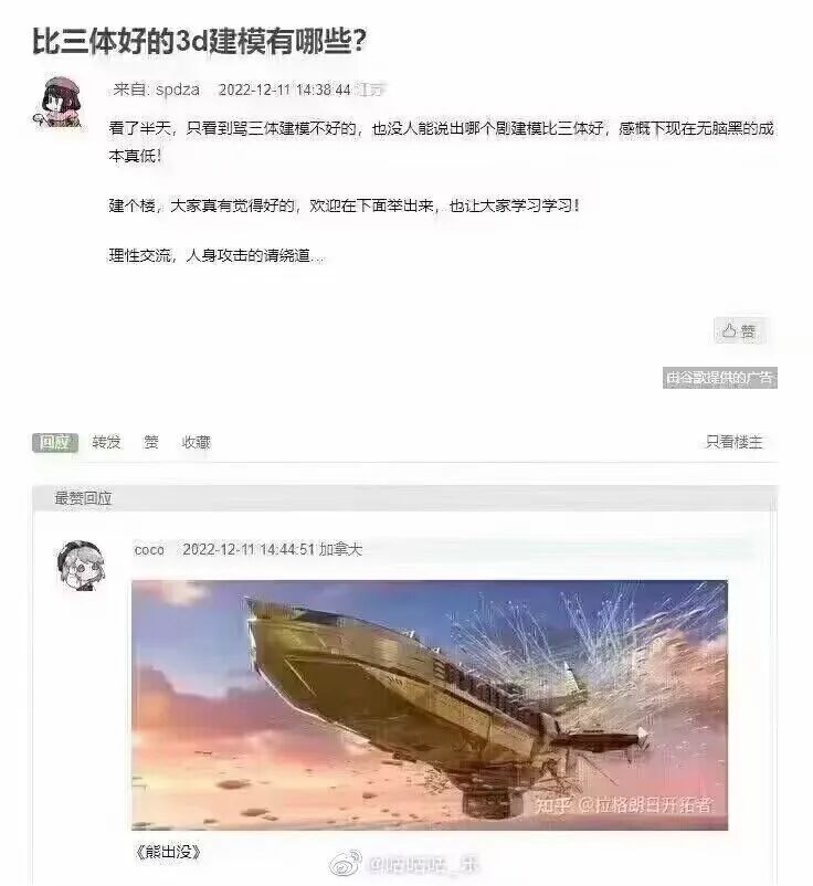 另外,2022年出品的动画剧集《三体》播出数集后就差评如潮,仅仅是建模的原因么?建模乃至画面的原因是这件事的主要原因么?