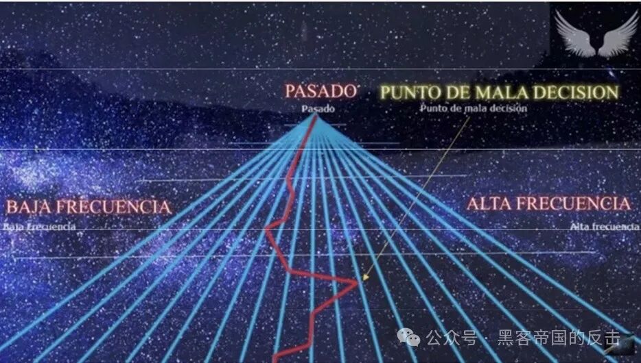 但同样,我们也可以给同一条蓝线上的每个点或 2019 年 7 月 9 日这个日期分配字母,以对应无数个好的和坏的交替未来。只有你自己的频率--感知、你是谁......以及作为飞船的频率模拟器,才能决定你将拥有什么样的现在或未来。