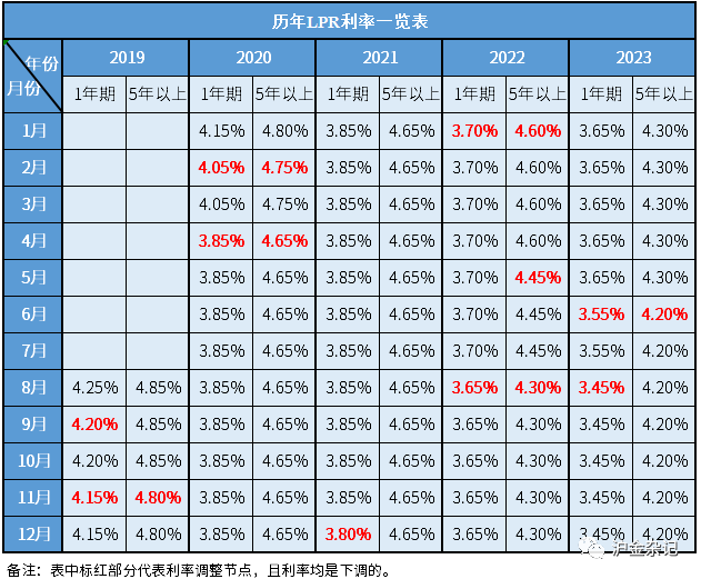 以上就是“2019-2023历年LPR调整一览表”的相关内容。