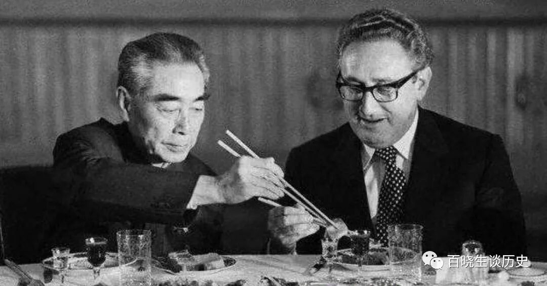 因为双方有着共同目标,在一些细节问题上可以让步。但是,在谈判桌上的周恩来,只要涉及中国人民的利益与国家主权、民族尊严时,总是不会退让一步。日常生活中,周恩来却像一个邻家长者一样,对基辛格有着无微不至的关心与照顾。当基辛格第二次来到中国时,周恩来欢迎他的态度就像是中美两国友谊已经根深蒂固,令基辛格不仅喜出望外,而且有一种如沐春风的感觉。涉及一些根本问题时,周恩来却丝毫不退。1973年11月,基辛格应邀前往北京人民大会堂参加宴会,他对周恩来这么说:“中国似乎还是一个儒家社会,有着非常古旧的真理。正是这个真理规范的个人行为和社会运转,共产主义所做的就是把马克思主义确定为那个真理的基本内容。”按照他所说,中国共产党带领全中国人民翻身做主,乃至在新中国的建设事业中起到重要贡献,完全因为这套古旧的真理和马克思主义。周恩来忍不住发火,他对基辛格义正词严地说道:“儒家思想是阶级压迫学说,共产主义则是解放哲学,这两个根本风马牛不相及!”