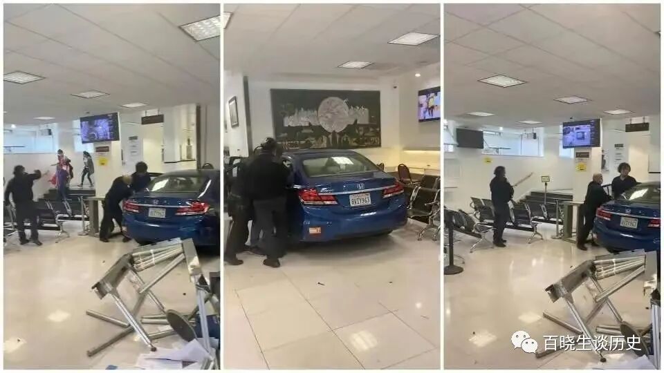 当地时间10月9日下午,中国驻美国旧金山领事馆遭到不明身份者的袭击。这个暴徒驾驶一辆蓝色本田汽车,加大油门,猛烈撞击我领事馆,给领事馆建筑造成严重破坏,汽车径直闯进领事馆签证大厅,撞击到墙上才停下!