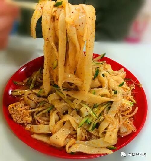 擀面皮是一种用面粉和水擀成的薄片,切成条状,下锅煮熟后捞出,加上肉汤、香菜等佐料。