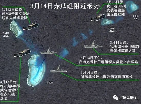 当时,越南军队企图占领中国的永暑礁和赤瓜礁,中国海军和海警部队奋起反击,击沉了越南的几艘军舰,消灭了越南的数十名士兵,成功地守护了永暑礁和赤瓜礁。
