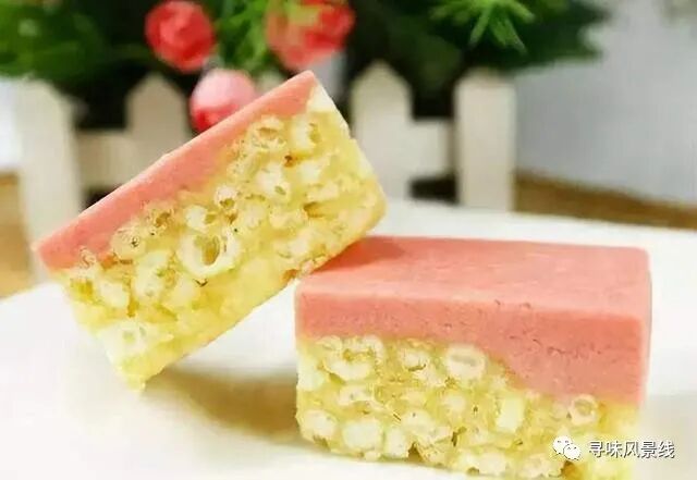 它用糯米粉制成的米糕切片后油炸,再拌上白糖和饴糖而成。它外观清雅如芙蓉,口感清甜不腻。