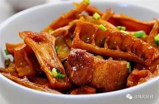 用当地的毛竹冬笋和五花肉同烧而成,笋干脆嫩,肉皮软糯,咸甜适口,香气四溢。