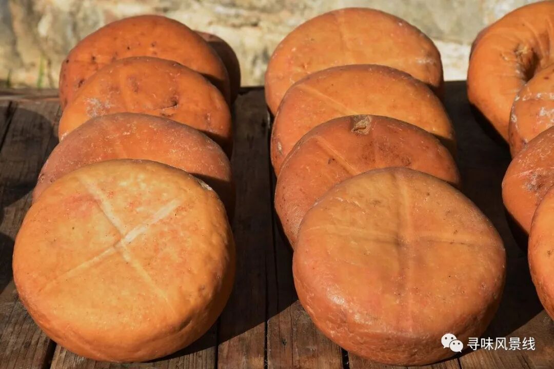 它用豆腐经过发酵、晾晒、熏制而成的一种干豆腐。