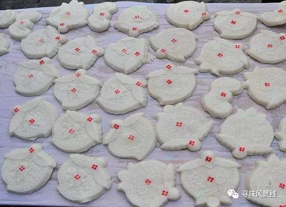 用水和米粉揉成粉团后压入模具成型,再蒸熟即可。
