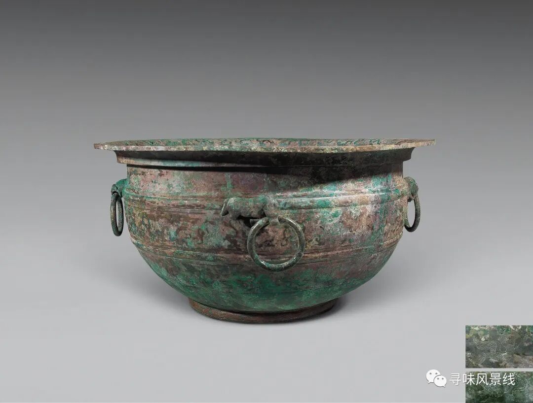 它是一种椭圆口、深腹、圈足、有盖和提梁的青铜器,腹部有各种图案或形象装饰。