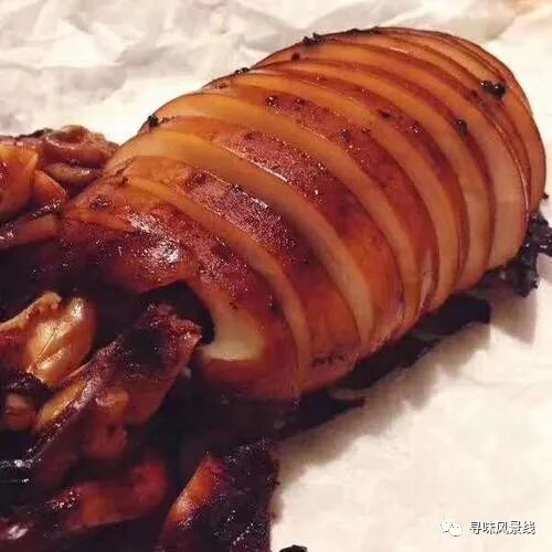 墨鱼大烤:墨鱼肉质紧实,色泽红艳。
