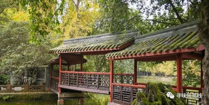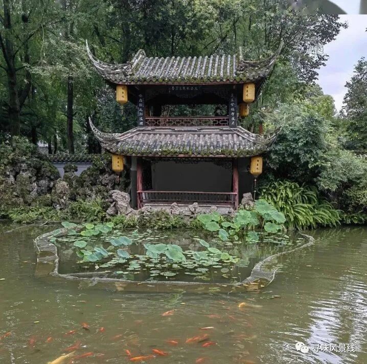 罨画池内有许多亭台楼阁、假山水池、花木草竹,构成了一幅幅如诗如画的景致,