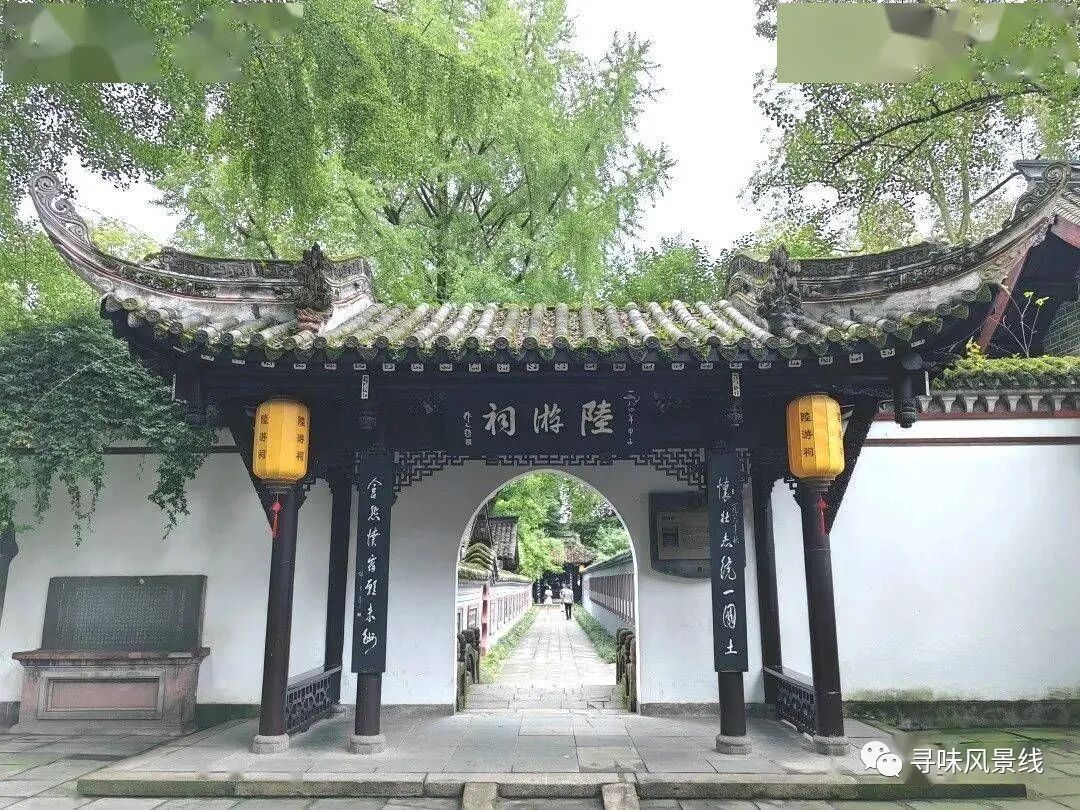 陆游祠是为了纪念南宋诗人陆游而建立的祠堂,位于罨画池东岸。 陆游曾经在崇州任通判,居住在罨画池附近,并在这里写下了许多描写罨画池风光和游园活动的诗作。