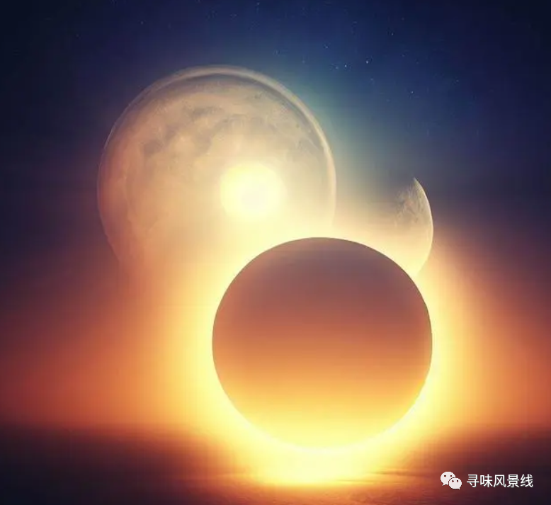 当时,人们可以看到一轮红日从海平面上缓缓升起,而另一轮明月则从日心处跳出,与太阳并肩上升,或者围绕着太阳跳跃,或者重叠为一体,或者上下错落,形成各种美丽的图案。
