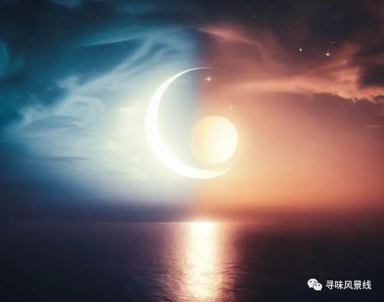合朔意味着太阳和月亮在黄道上相对,相差180度。如果这一天天气晴朗,你就有机会看到太阳和月亮并肩出现。