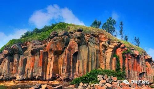 其中最引人注目的景点就是那晏海石滩,这里有着成片的大型柱状玄武岩,形成了六角形的柱子,非常壮观。
