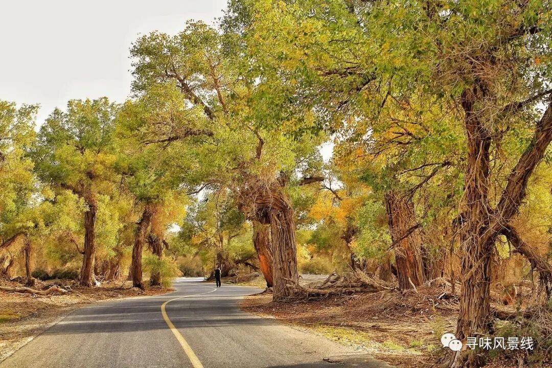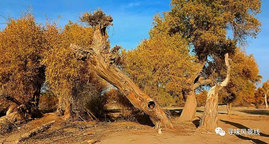 胡杨林公园有着不同的风景,春天是绿色的,夏天是黄色的,秋天是红色的,冬天是白色的,四季变换,美不胜收。