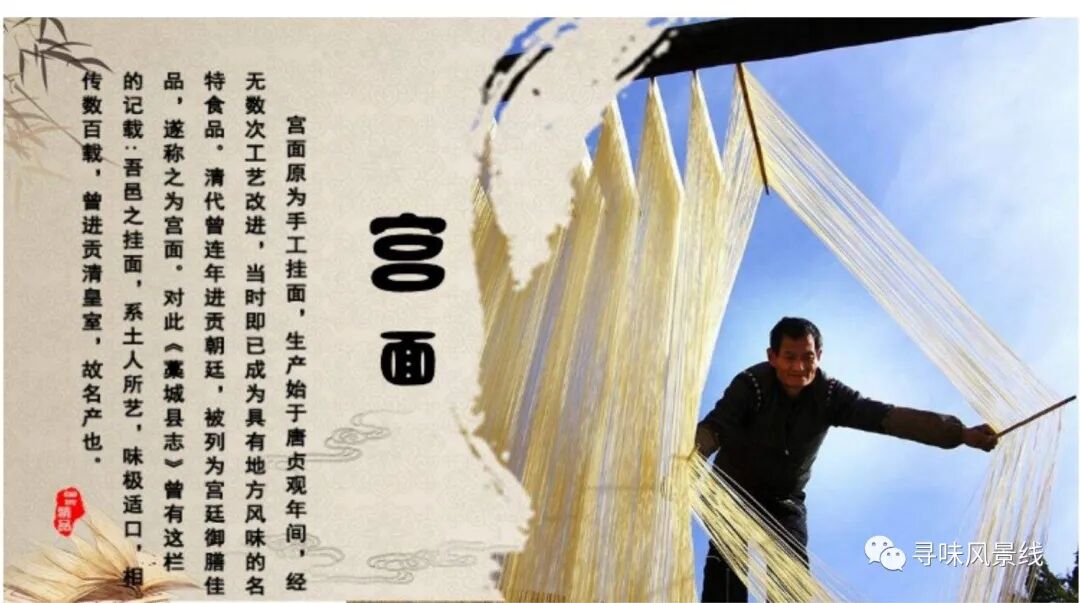 宫面曾被地方官吏进贡皇宫,被列为宫廷佳品,因此而得名“宫面”。