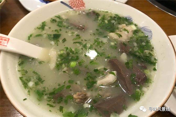 - 羊汤,是一种用羊肉和各种药材熬制的汤,肉质细嫩,汤汁浓郁,是岫岩的名菜,也是冬季的滋补美食。