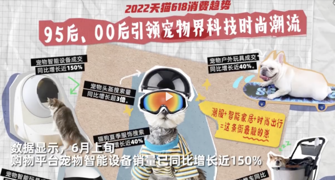 根据2022天猫618消费趋势报告显示,6月上旬,宠物智能设备销量同比增长近150%,95后、00后宠物主在为宠物花钱这件事上绝不含糊。