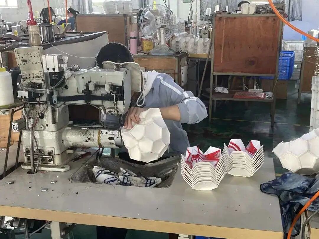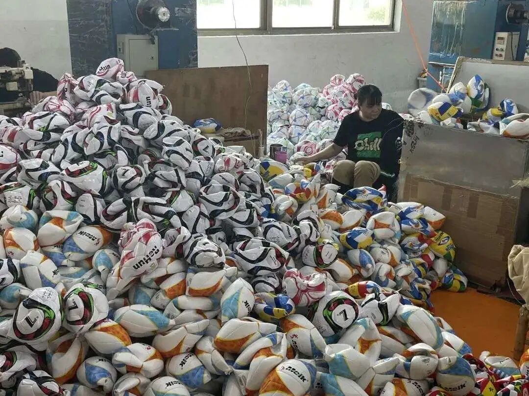 “通常一款足球生产过程需要近10道工序,从下料到剪裁印刷,再由工人将球片缝纫成新球进行充气检验,直至最终包装出厂。”