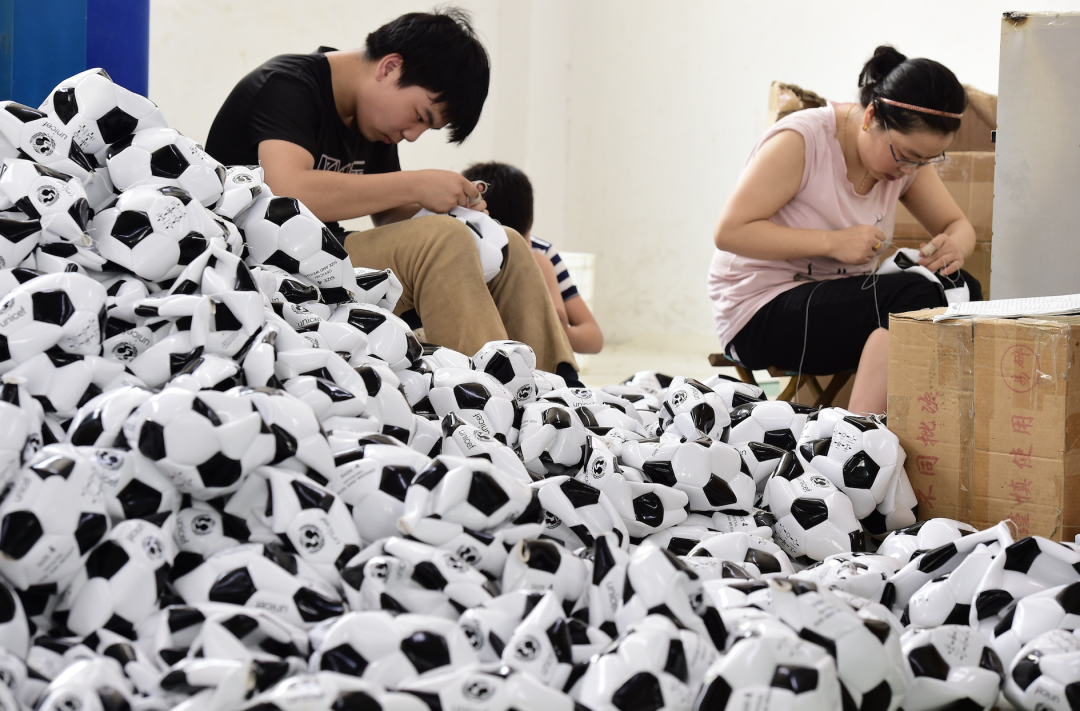 根据义乌体育用品协会估算,从旗帜到足球、球衣,“义乌制造”几乎占到整个卡塔尔世界杯周边商品市场的70%。