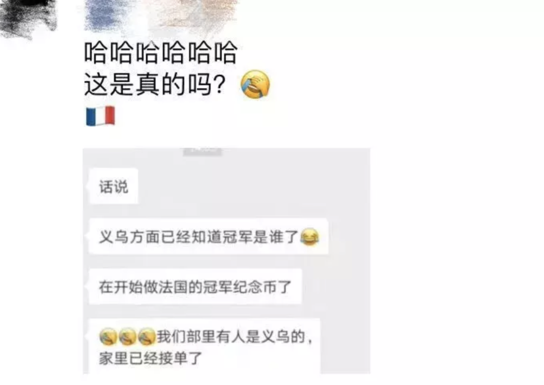 赛前,义乌提前“预言”了法国队夺冠,据传原因是有商家已经接到法国队夺冠的纪念币订单。