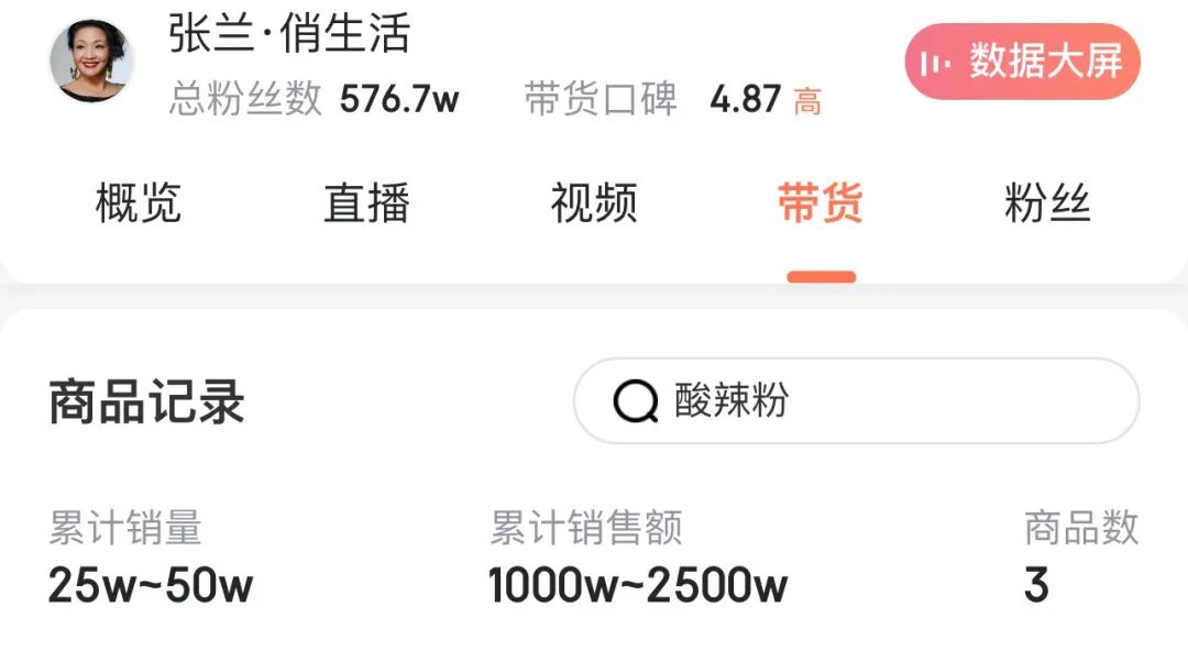 根据电商平台的数据,截至11月24日,张兰直播间内的酸辣粉销售额已超千万。